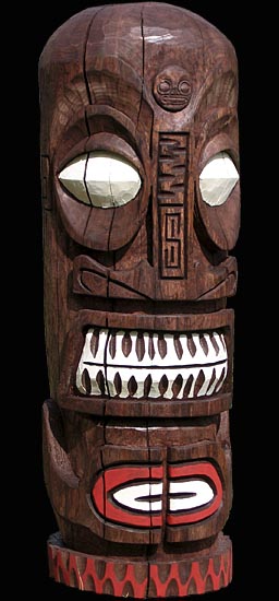 name: OAk Marq style: Poly Pop Marquesan height: 34 inches wood: Oak finish: red mahogany and acrylic paints tools: hand chisels and rotary carver price: $550 First attempt to carve oak. It looks fantastic but is much more difficult to carve than other woods I've tried. This one is styled after a Tahitian tiki pole carved by Oceanic Arts that I own. I really like this look!